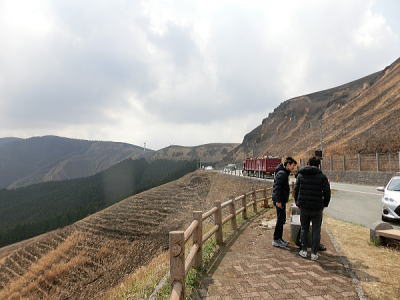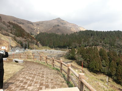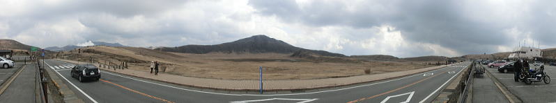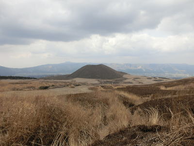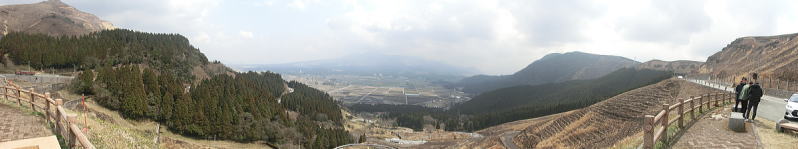 | 阿蘇山への途中、二重峠展望台からの眺め野焼きで山肌真っ黒です。 |