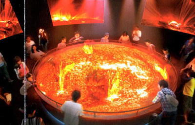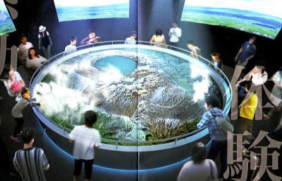 ロープウェー駅内で阿蘇スーパーリングを体感します。 (パンフレットから) 直径6mの阿蘇カルデラを再現した、