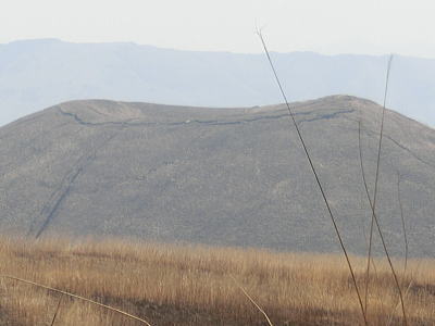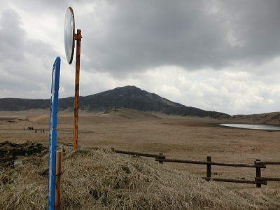 裾野の直径は約380メートルで、頂上に直径約80メートルの火口跡が残る。地震のためか中央に亀裂が入っています。 |