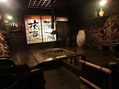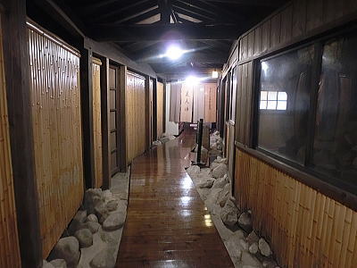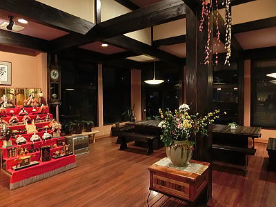 いこい旅館前に囲炉裏部屋の休憩所・・ |