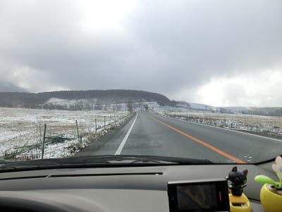 | 乗馬で草千里をゆったり進む観光客の姿を車の中から・・ |