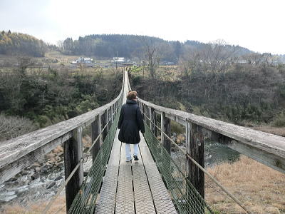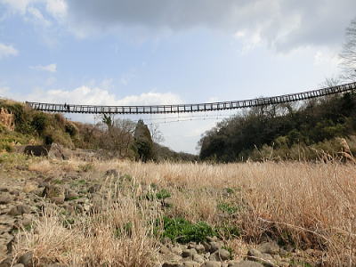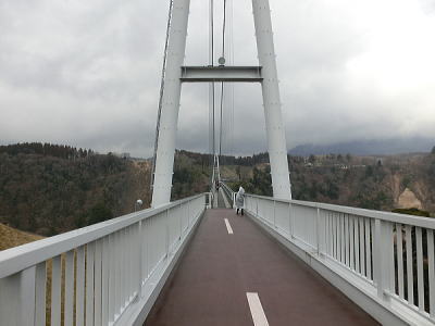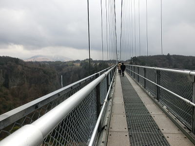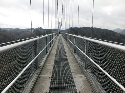 長さ390m、高さ173mの吊り橋で、人が渡る吊り橋と
