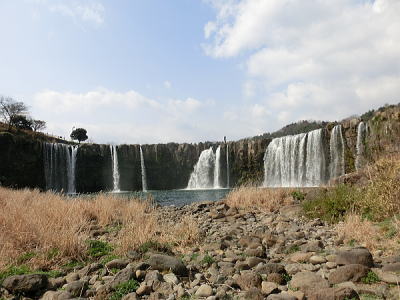 雄滝(幅100m、高さ20m)と雌滝(幅10m、高さ18m)の2つの滝があります。 |