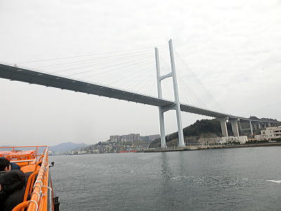 | 西海橋は1955年に佐世保市と西彼杵半島をつなぐ橋として急流の針尾瀬戸にかけられた全長316m、海面からの高さ43mのアーチ式の橋で建築当時は、この型式の橋としては世界第3位、東洋一の大きな橋でした。今はどうかな? |