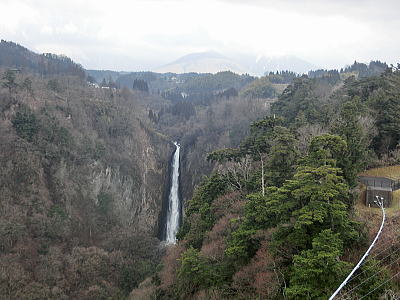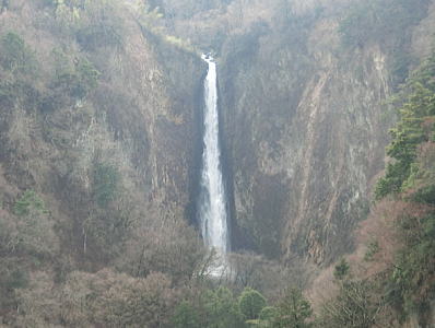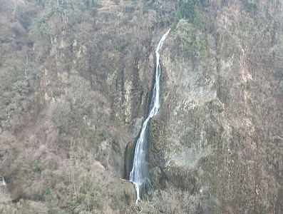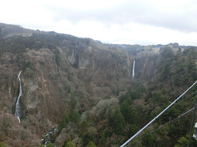 | 吊り橋から 左・雌滝 右・雄滝 |