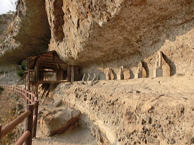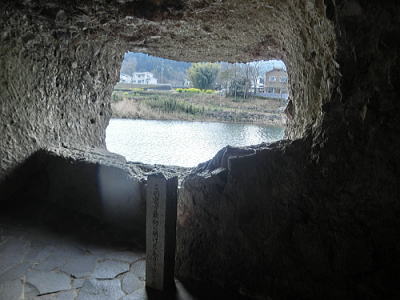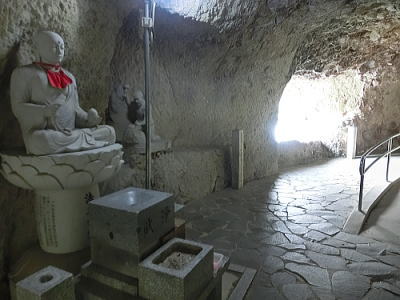 青の洞門・・禅海和尚の碑が建てられています。 |