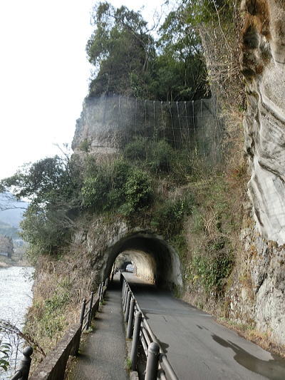 青の洞門・・1906年(明治39年)から1907年(明治40年)にかけて陸軍日出生台演習場への輸送路整備の