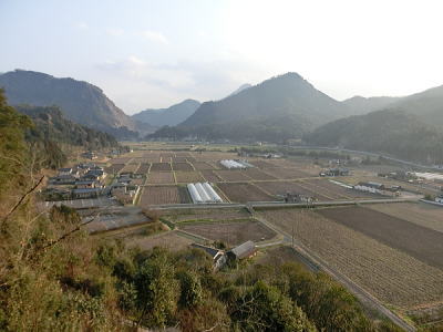 前方の山の山頂が羅漢寺 山頂まではロープウエーで