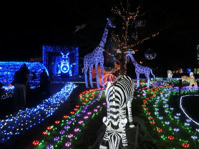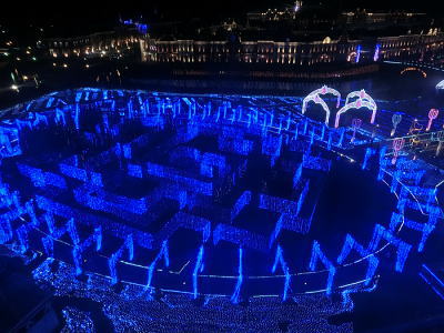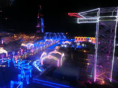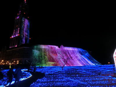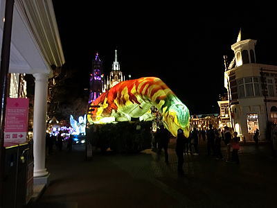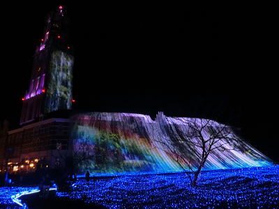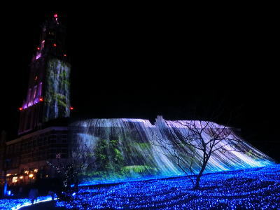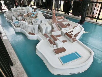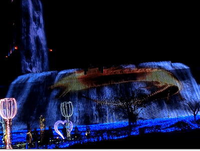 巨大ジオラマ模型を用いたプロジェクションマッピング壁面の4面映像が連動した映像展開を楽しむことができます。