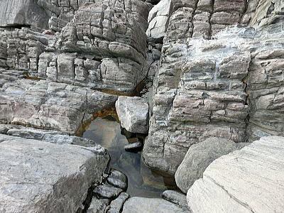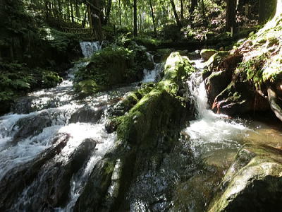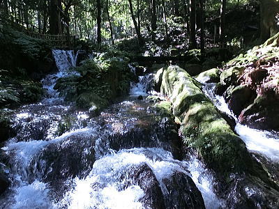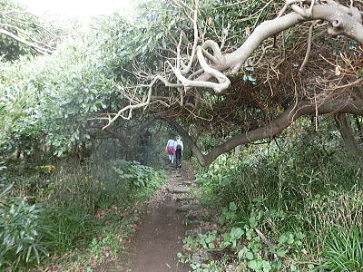 別世界。植生の豊かさと、柱状・盤状節理の織り成す岩場の