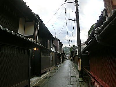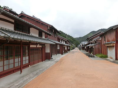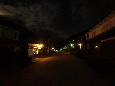 | 早朝の熊川宿 電柱がなくすっきりしています。 |