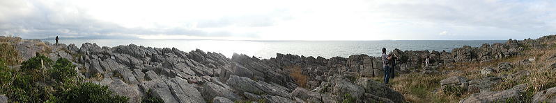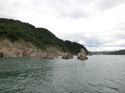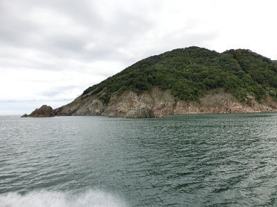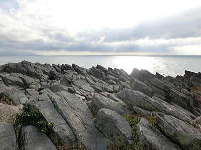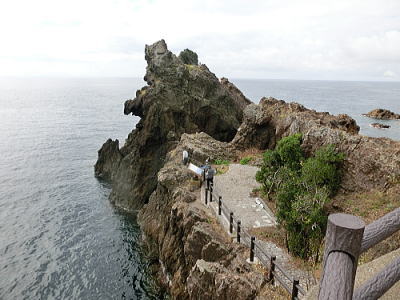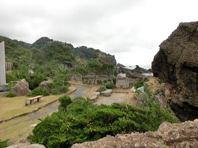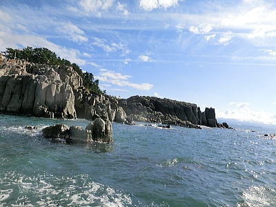 | 大湊神社を過ぎ西海岸の岩場が見えてきました |