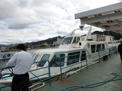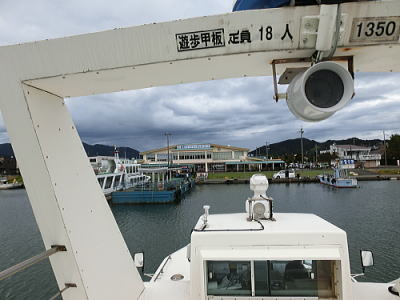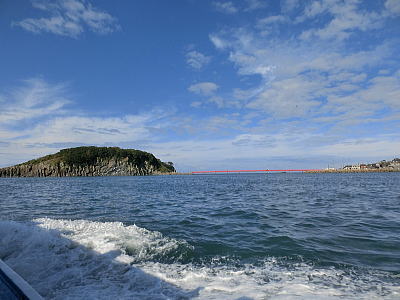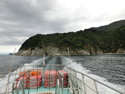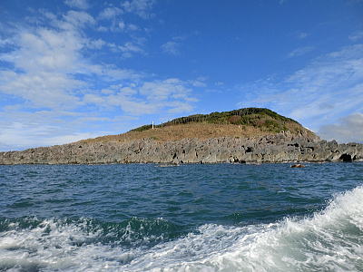 東尋坊先端に浮かぶ雄島へと遊覧船は進んでいきます。