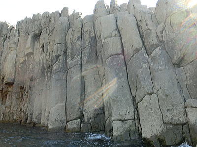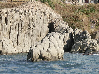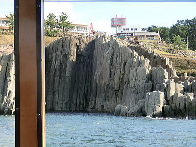 遊覧船から雄島の板状節理を・・・ 灯台も |