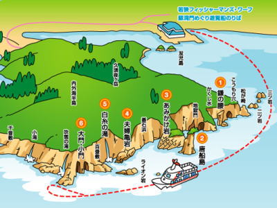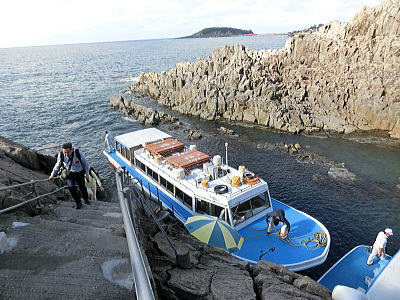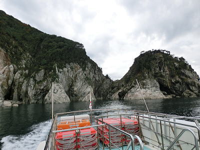 珍しい奇岩を遊覧船から存分に楽しみます。 |