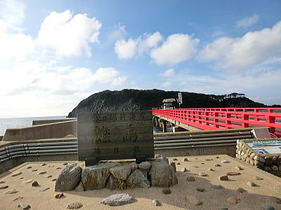 朱塗りの橋を渡り雄島へと・・風がきつく飛ばされそうです