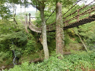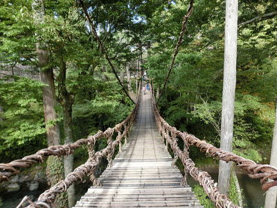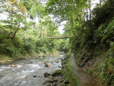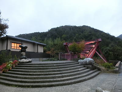ライトアップされた「あやとり橋」 あやとり橋・・鶴仙渓遊歩道のほぼ中心に架かる