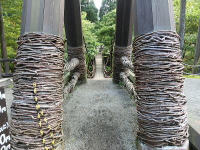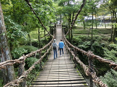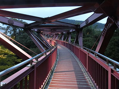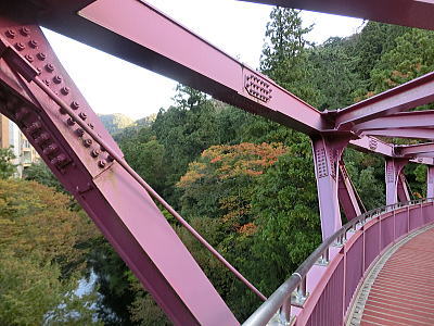 ひときわ目をひく紅紫色のS字橋「あやとりはし」。日本の伝統的な遊び、あやとりを