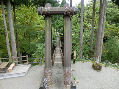 雄島 大湊神社鳥居と朱塗りの橋・雄島橋を |
