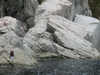三段岩・・水面から25mもの高さ(ビルの8~9階くらいに
