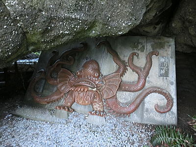 岩の内部に、大蛸の造形物が・・・願いをかけた賽銭を