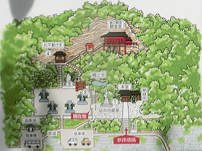 日本寺案内図・・・この鋸山山中にある“日本寺は、西暦725年創建の古刹で、山のほとんどの部分を
