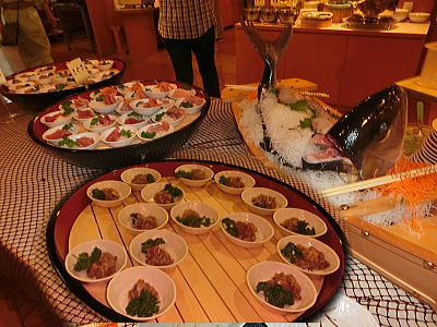 はまちの姿造り 鮪・アジのたたき等が並んでいます。