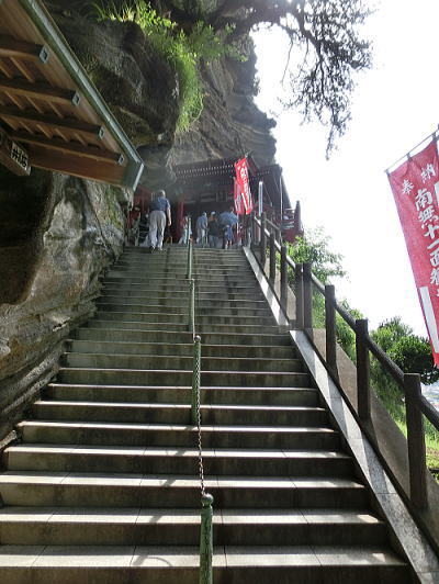 薬師本殿、お参りします。階段階段のオンパレードです。