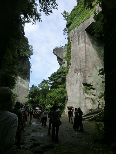 第二目的地 鋸山・日本寺(西口管理所)大人600円の拝観料がいります。鋸山は房州石が切り出されていたため、所々に石切場の跡を見る事が出来ます。そして石が切り出された跡の山の稜線が、ノコギリの様にギザギザしているために、その名が付いたと言われています。