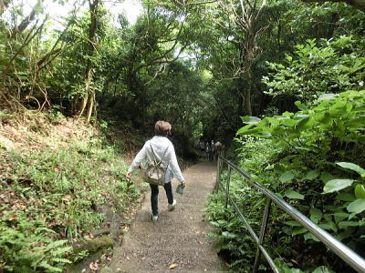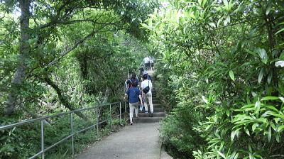 | 山頂を後にして、羅漢道へと石段を下って行きます。 |