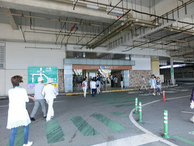 東京アクアライン上のパーキングエリア海ほたるに到着 1階入り口へと