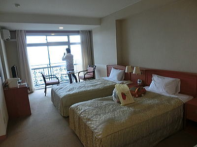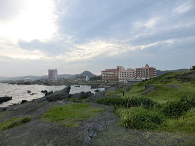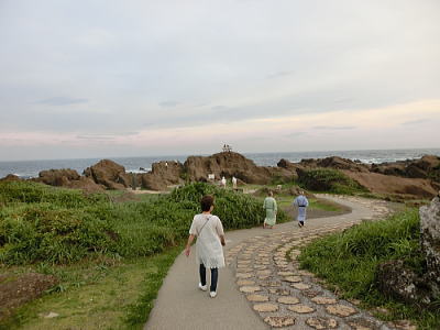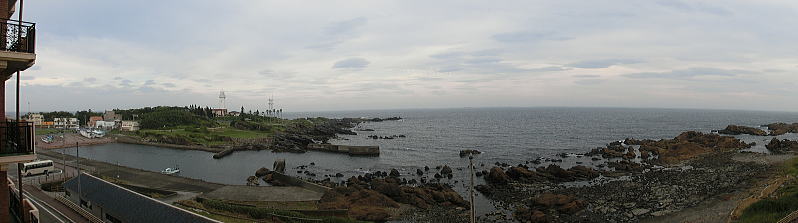 | ホテル窓から・・・灯台が見えます。食事前に灯台まで散策します。結構歩いているのに、まだ歩くか |