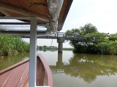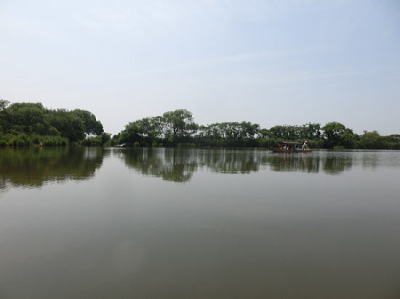 この日は風ひとつない猛暑です。普段はカモやカイツブリ、ヨシキリなどを間近で見られるそうですが