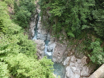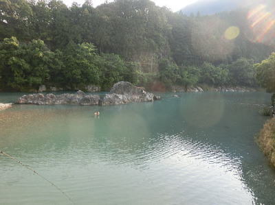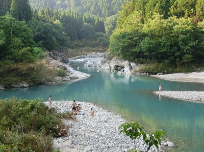 モネの池途中、板取川で水遊びする人たちを・・・ |