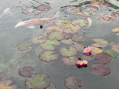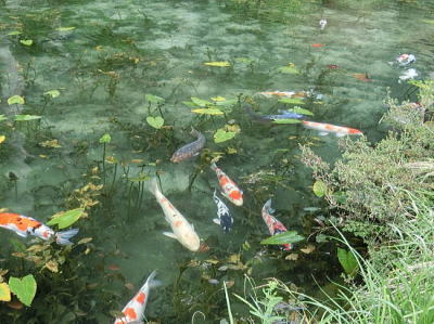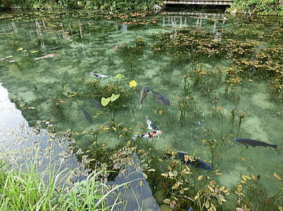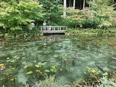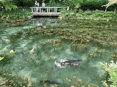 話題になっています。モネの池には高い透明度の水のなかを錦鯉が泳いでおり、まさに「和風モネの池」です |