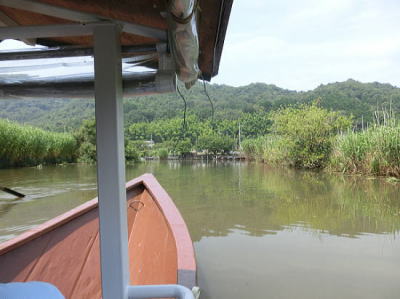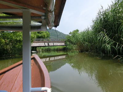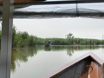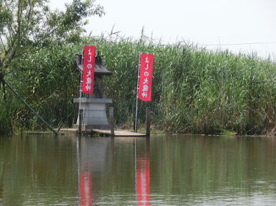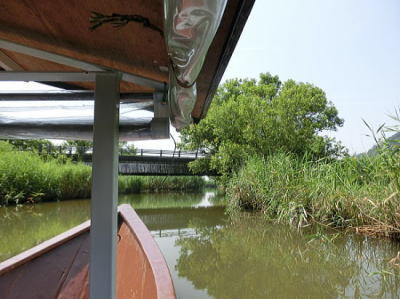 暑いとヨシの中から出てこないそうです。琵琶湖八景のひとつ、近江八幡の水郷風景を昔ながらの