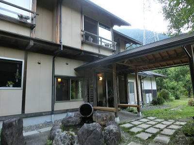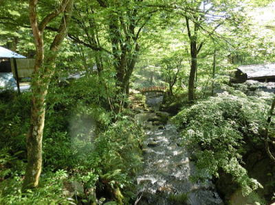 食後お宿から徒歩10分程のところにある、板取温泉へと |