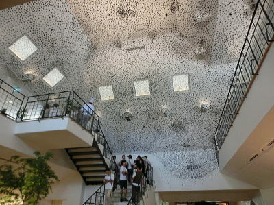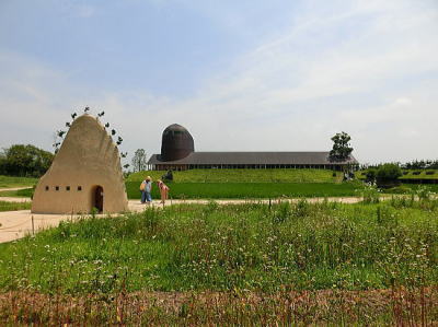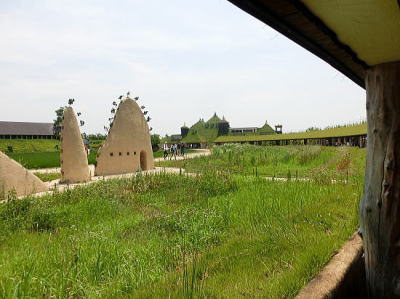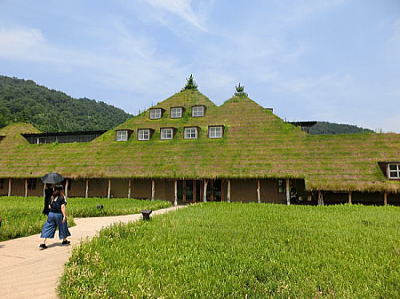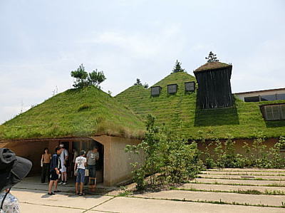 駐車場から正面入り口を・・屋根は芝生になっています。