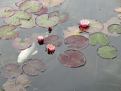 池に咲く睡蓮がとても美しく、フランスの印象派の画家であるクロード・モネの名画「睡蓮」にそっくりと