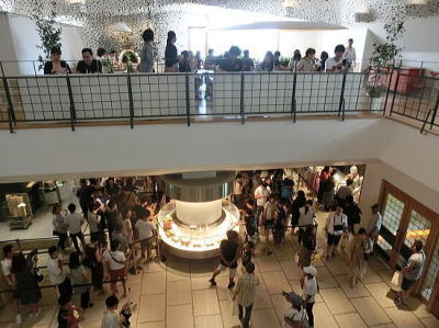 カステラショップ、パンショップ、コンテナショップなどが並ぶ壮大な空間が広がっています。 |
