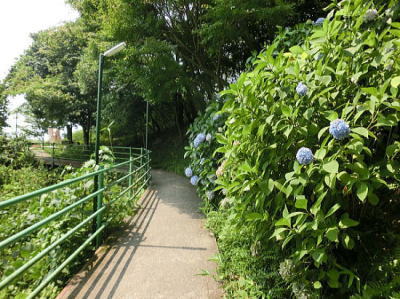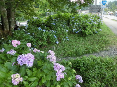 アジサイが駐車場一面に、ちょっと遅かったようです。