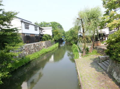 豊臣秀次が築いたという八幡堀の両側には、白壁の土蔵が立ち並び、近江商人の豊かさを今に伝えています。