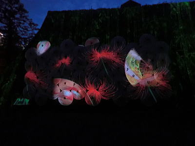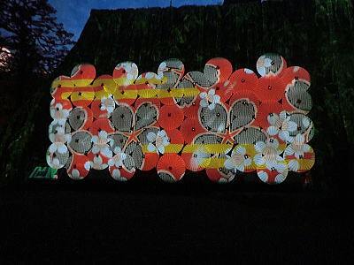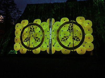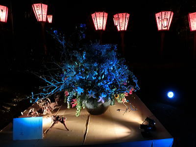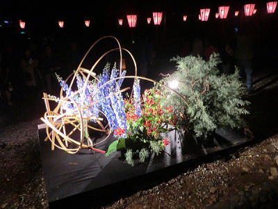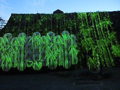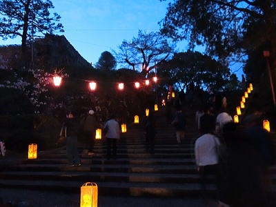 | 行燈と高知城を・・・昼間とは違う雰囲気が・・ |