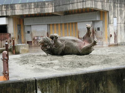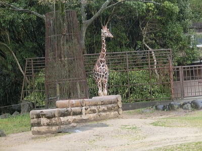| えひめとべ動物園へと向かいます。30分程度で、とべ動物園到着ですが、雨は激しく降っています。 |