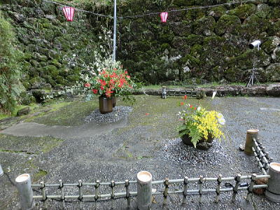 石垣の上部から突き出して造られており、その下には水受けの敷石をして地面を保護しています。 |