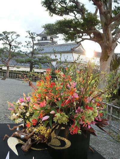生け花に天守閣、とても綺麗です。 華道専正池坊 |
