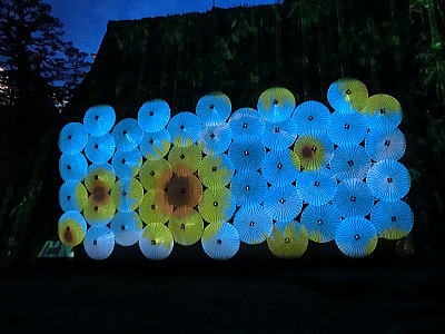 桜が咲き・・・ 和紙の傘に季節の移り変わりが終わりを告げます。