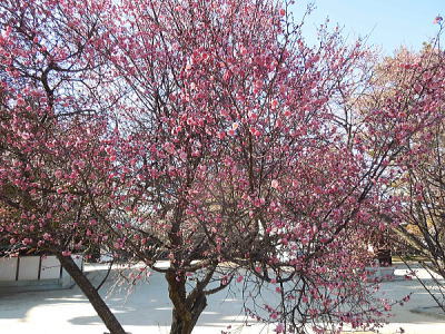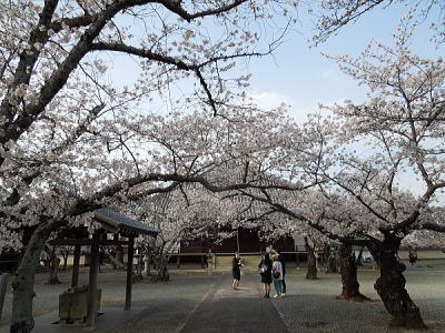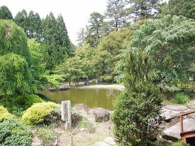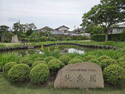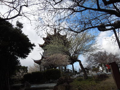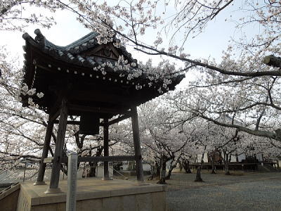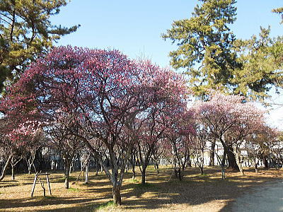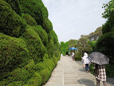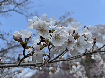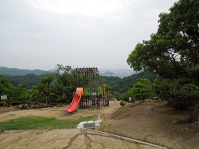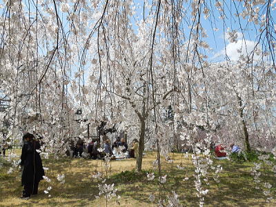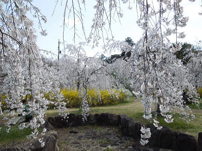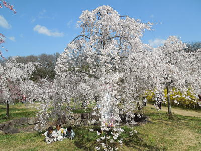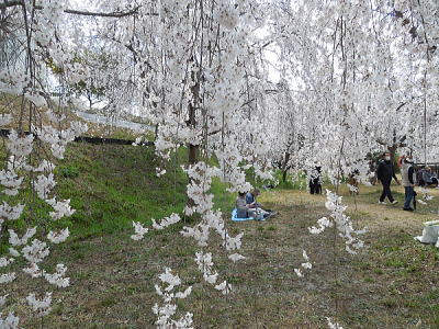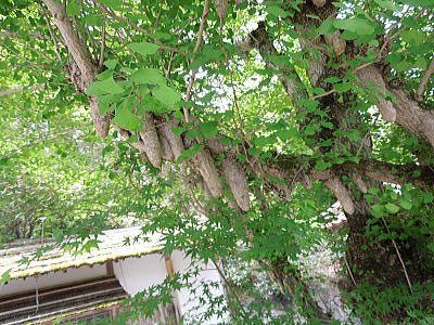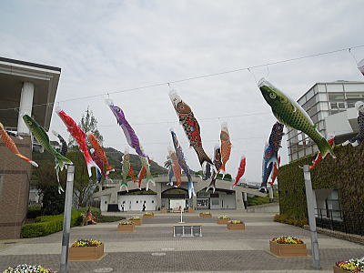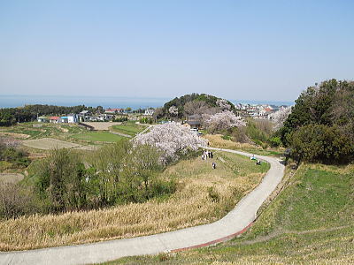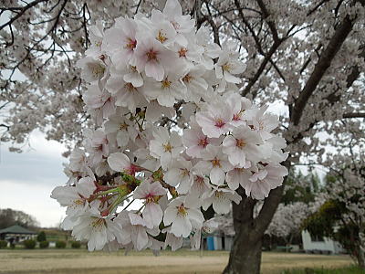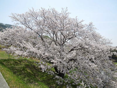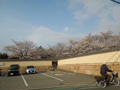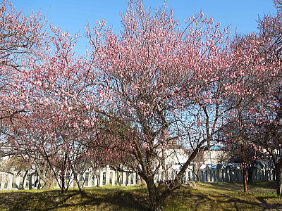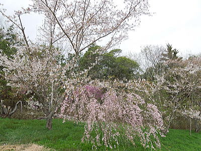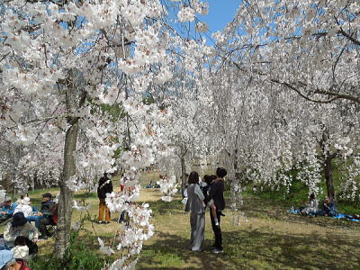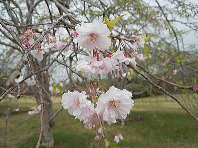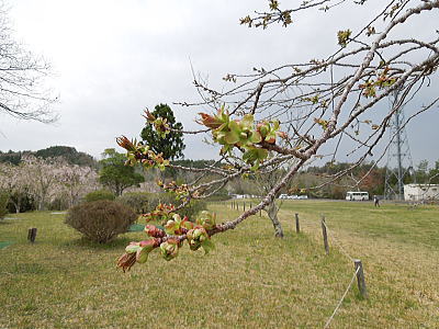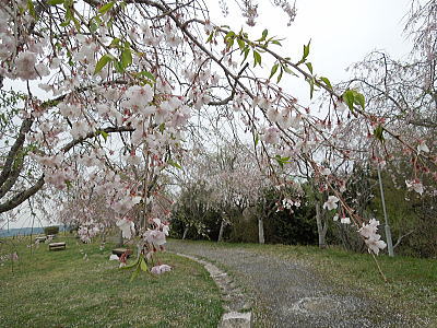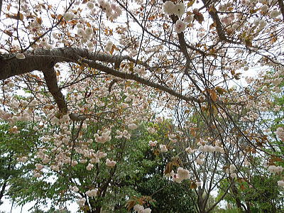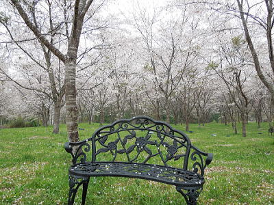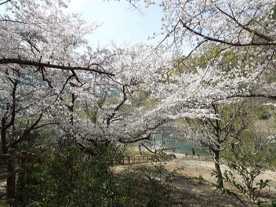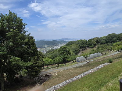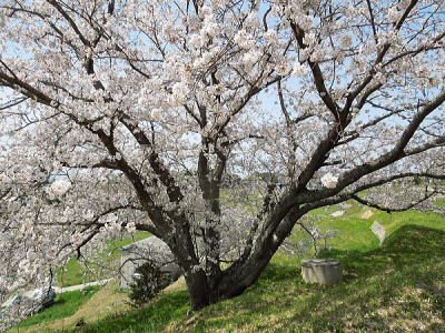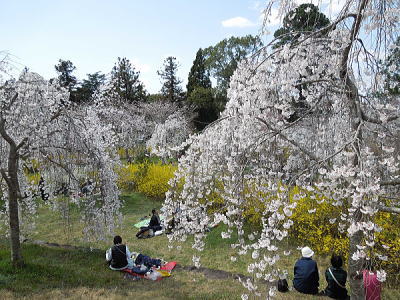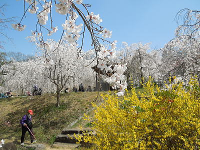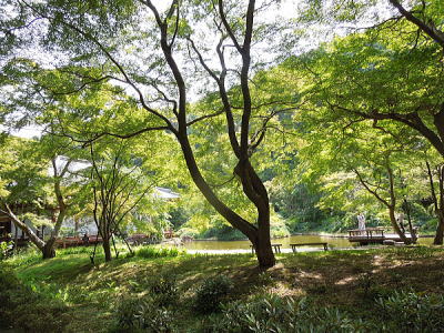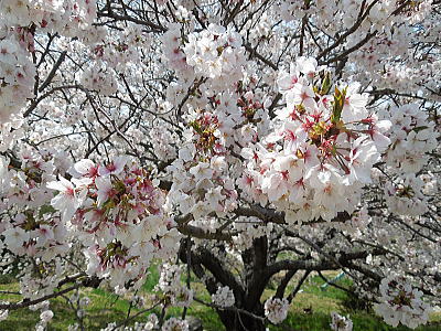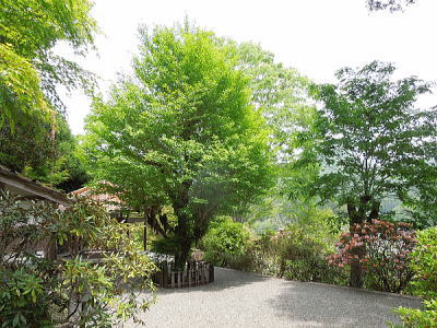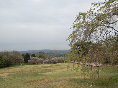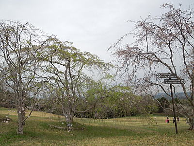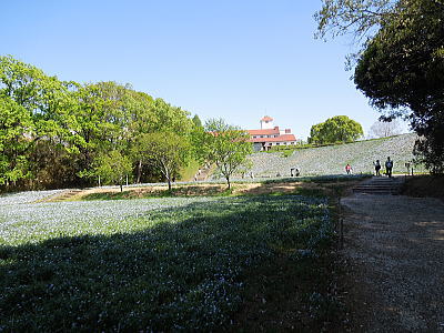広がる開放的な広場、今は桜が散り新緑が眩しい |