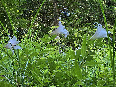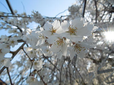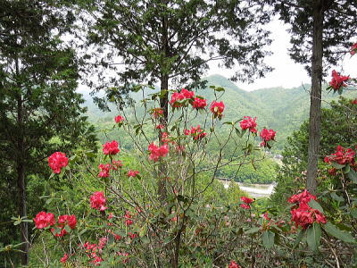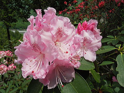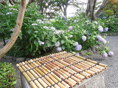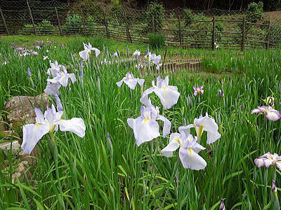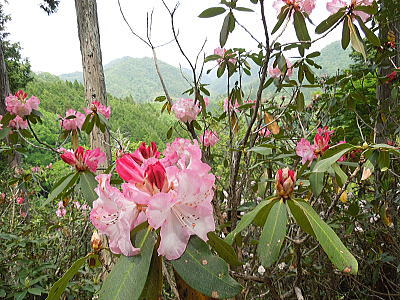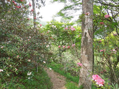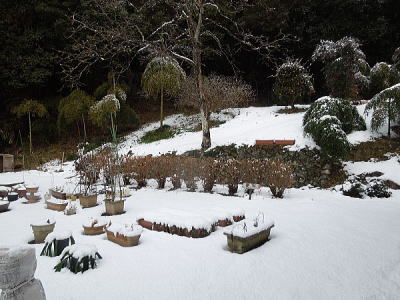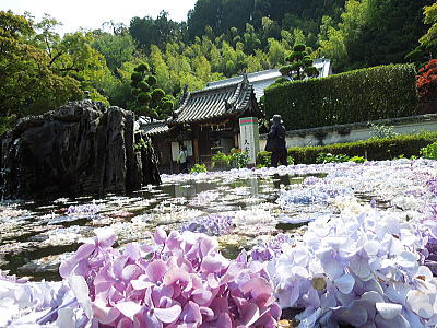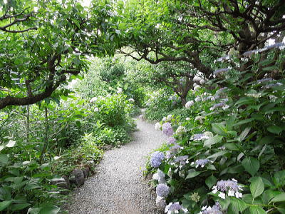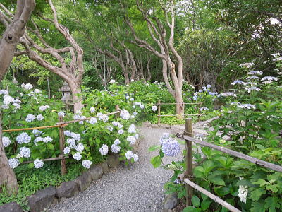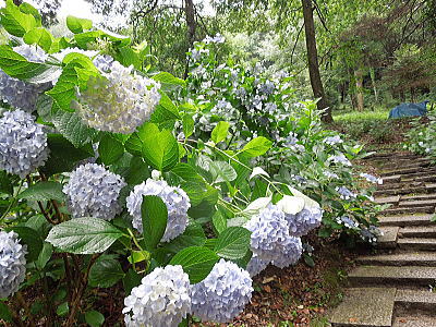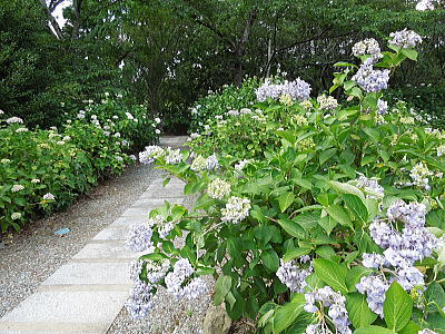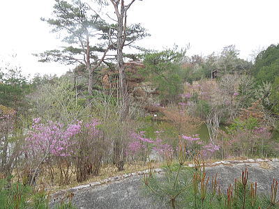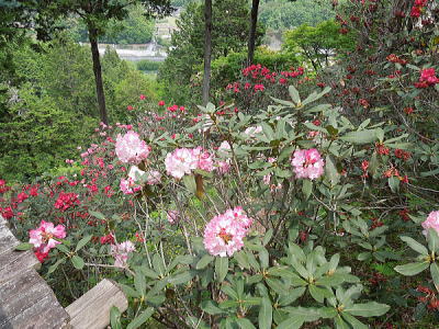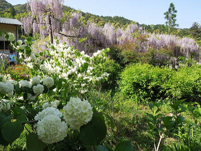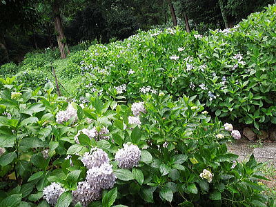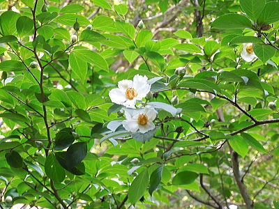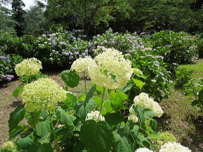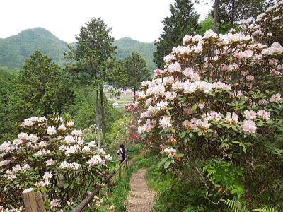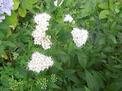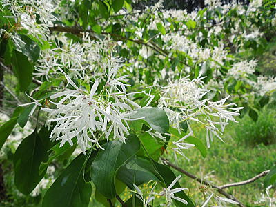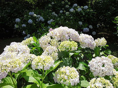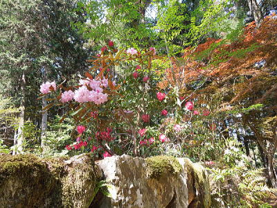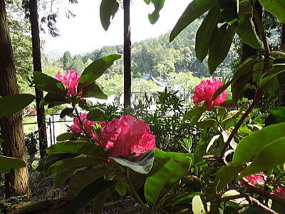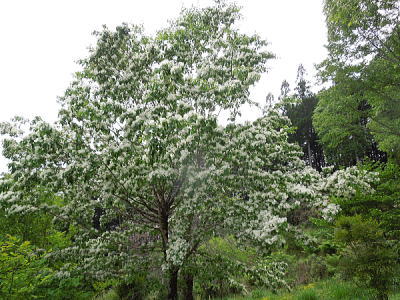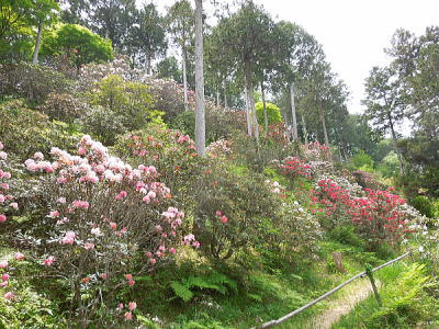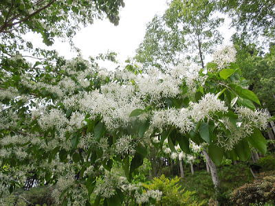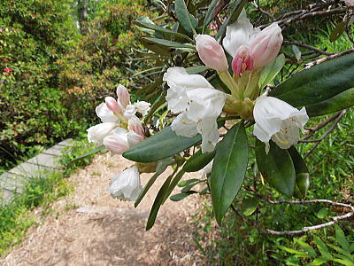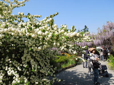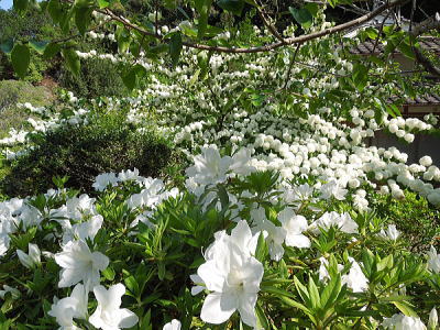 花の池の周囲に、ドウダンツツジの可愛いお花が満開 |