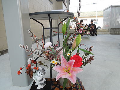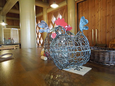 | テーブルの上には可愛い針金オブジェが置かれていました |